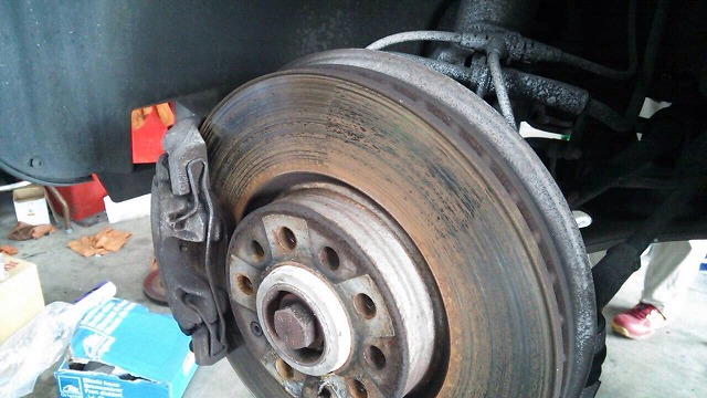 工場の鈴木です本日はパサートの車検でフロントブレーキパッド交換しましたローターも新品交換しました新品は写真のように厚みがありますセンサーも交換です