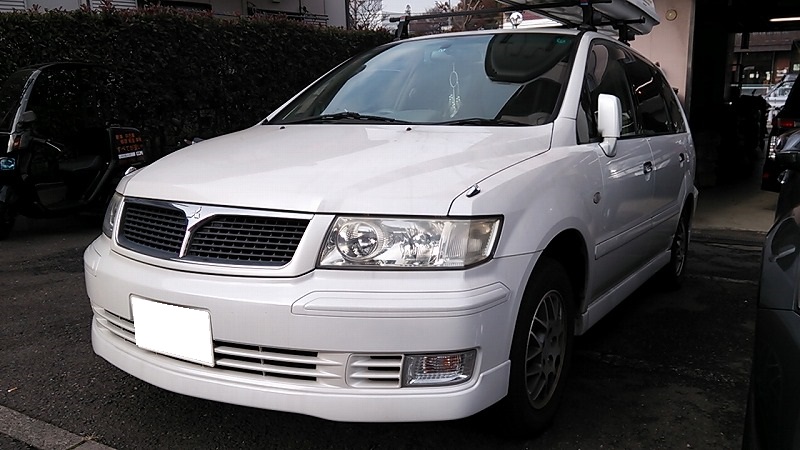 三菱 シャリオグランディス左リアクォーターにドア下部の鈑金修理作業が終わりました。