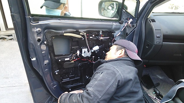 ドアハンドルを元々のドアハンドルに付け替え、ドアミラーや内張りも元々のドアから移植です。