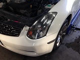 工場の鈴木です本日はV35のベルト交換です上から見えますが交換は下からです劣化してました新品はやわらかいですエアクリーナーも汚れていたので交換しました