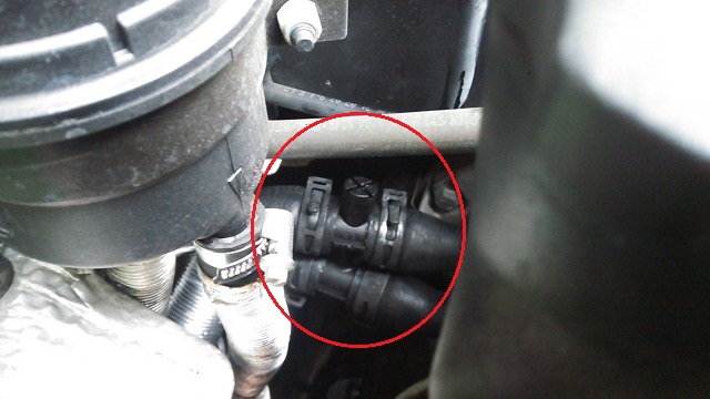 ヒータージョイントバルブです。ここから水鉄砲の様な感じでLLCが出てました。