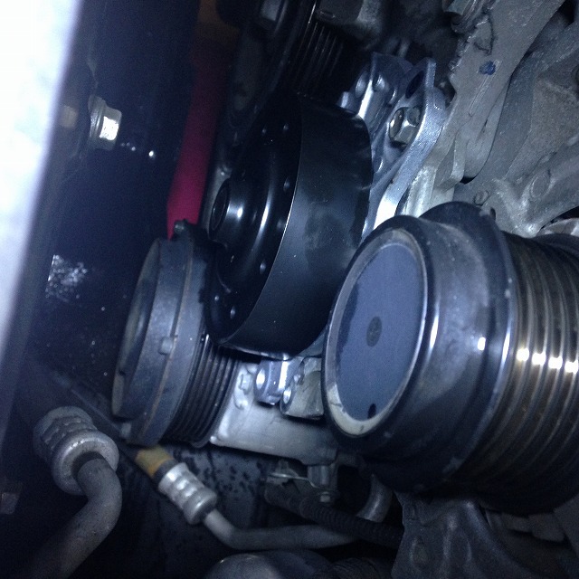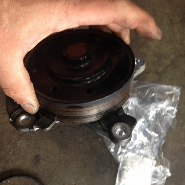 70系のヴォクシーですベルト付近よりコロコロ音みたいな音がでてましたオルタのベアリングかなと診断するとその下のウォーターポンプからゴリゴリと振動が伝わってきましたベルトを外して手で廻すと引っ掛かる様な感じがわかりました外してみるとゴリゴリする部分がありました新品取り付け後、スーパークーラントを入れて様子をみると異音は直りましたこの車はウォポンが弱いみたいですね