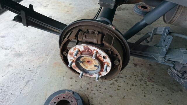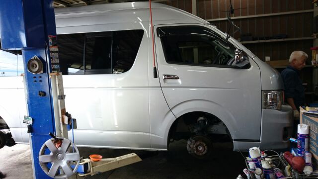 工場の森です本日はトヨタハイエースの車検点検を行いましたかなり距離乗るお車なので油脂類はほぼ交換します高速走行が多いのでブレーキはほとんど減りませんしっかり給油して調整をします後は見積もりを出してからの作業になります