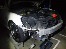 工場の森です本日はトヨタソアラのヘッドライトの片側とフォグランプの片側が点かない車両が入庫しましたヘッドライトはバンパーを外さないと点検できないためこんな状態になってしまっていますが原因がわかり次第修理していきたいと思います 車検、点検、・・・